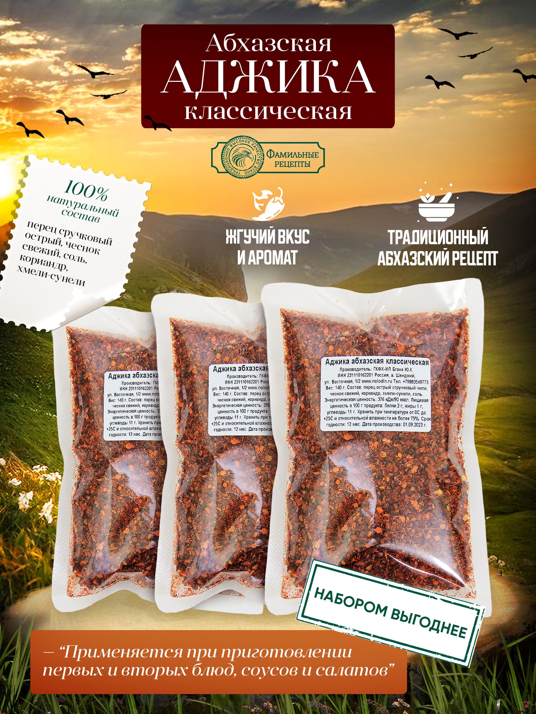 Аджика абхазская сухая, 3 шт (420 г)