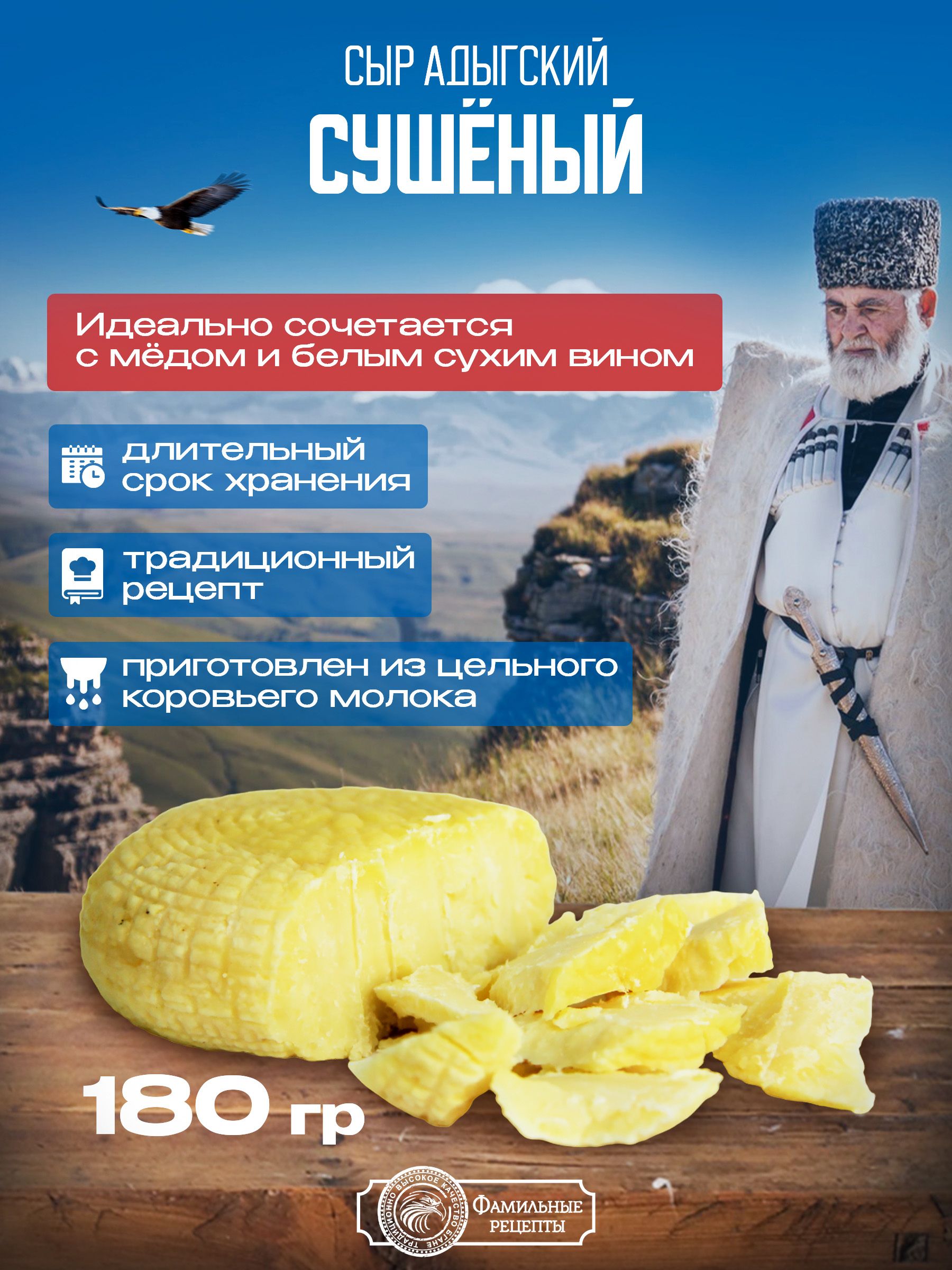 Если вы ищете, где купить сушеный адыгейский сыр, то можем смело сказать, что вы найдете его в магазине “Фамильные рецепты”. У нас доступные цены и большой выбор натуральной продукции. Оформить заказ можно на сайте компании “Фамильные рецепты”.